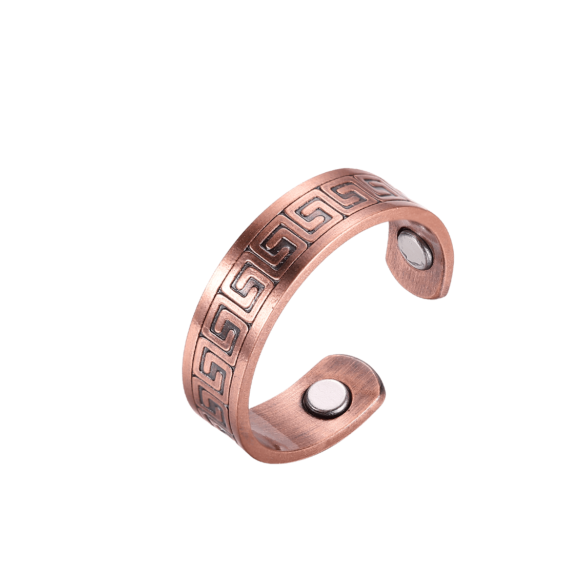 خاتم أنيق مصنوع من النحاس الخالص بتصميم يوناني كلاسيكي مع مغناطيسات علاجية. يساعد على تحسين...